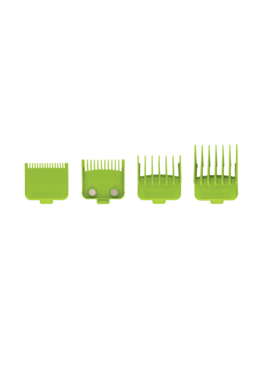 Gamma+ distanskammar är utvecklade för professionell användning och hjälper dig att snabbt och enkelt styra klipplängden vid fading, övergångar och allmän klippning. Kammarna är tillverkade i slitstark plast med säker passform på maskinen för stabil och kontrollerad klippning.